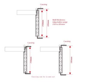 1. Wall hole size (2100mm H x 980mm W x 270mm Wall Thickness) and Frame Size (2080mm x 960mm) x 3