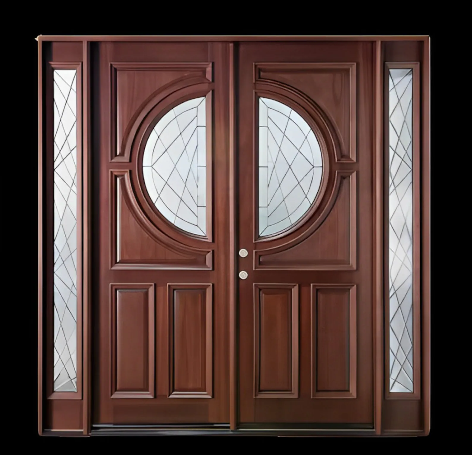 Handcrafted Solid Wood Double Exterior Door with Sidelights