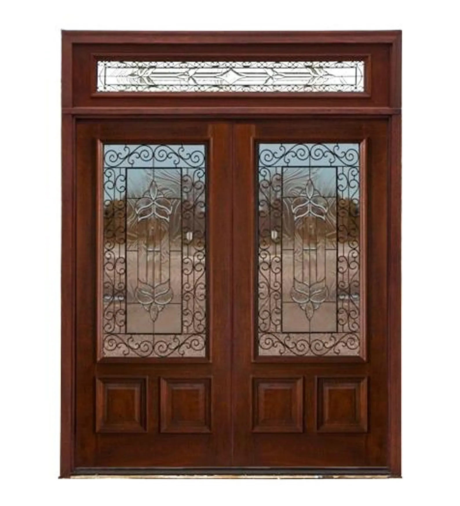 Exterior Double Door + Stained Cross Pattern Glass design with Transom