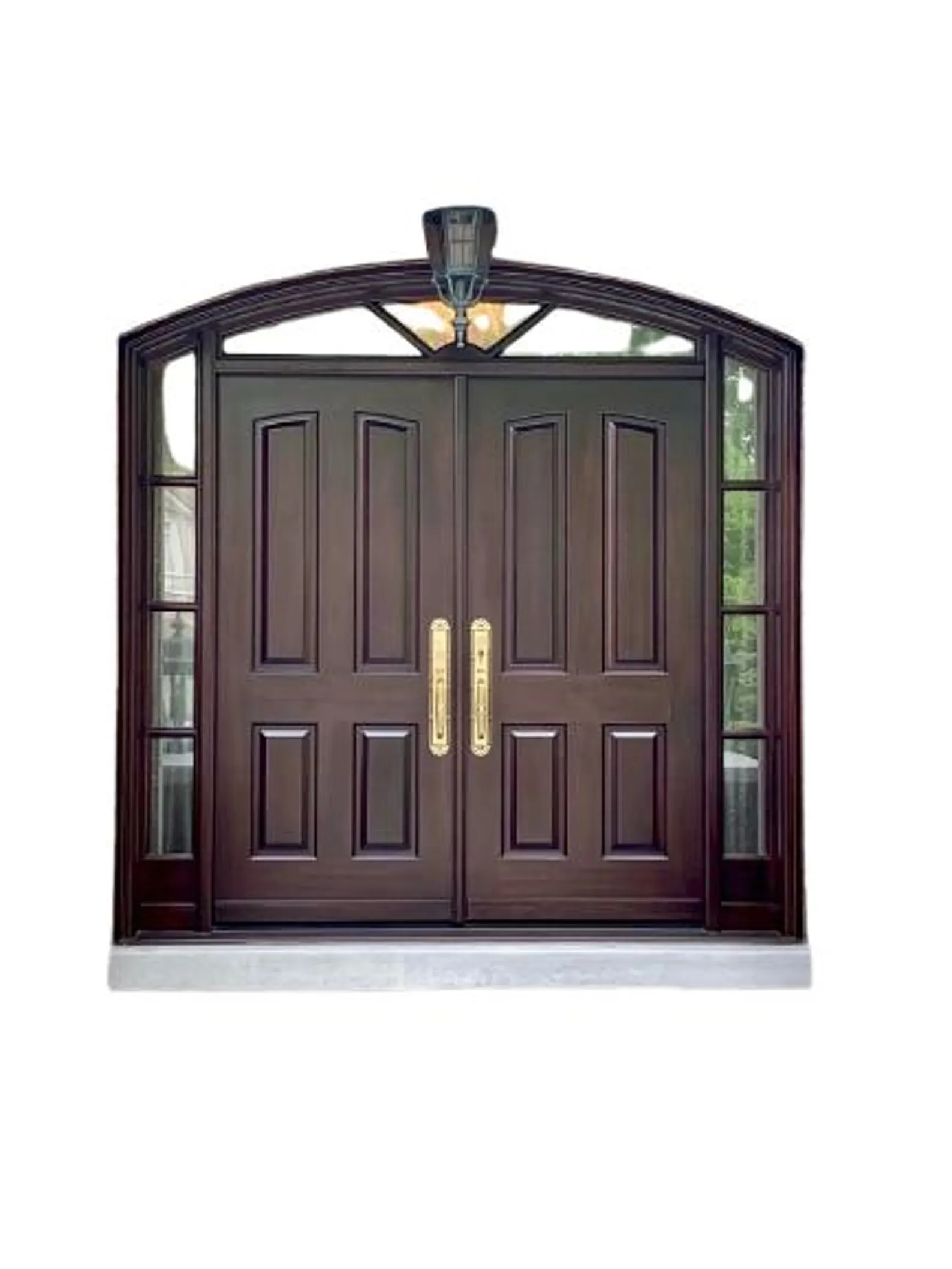 Custom Double Entrance Solid Wood Exterior Door with Transom and Sidelights